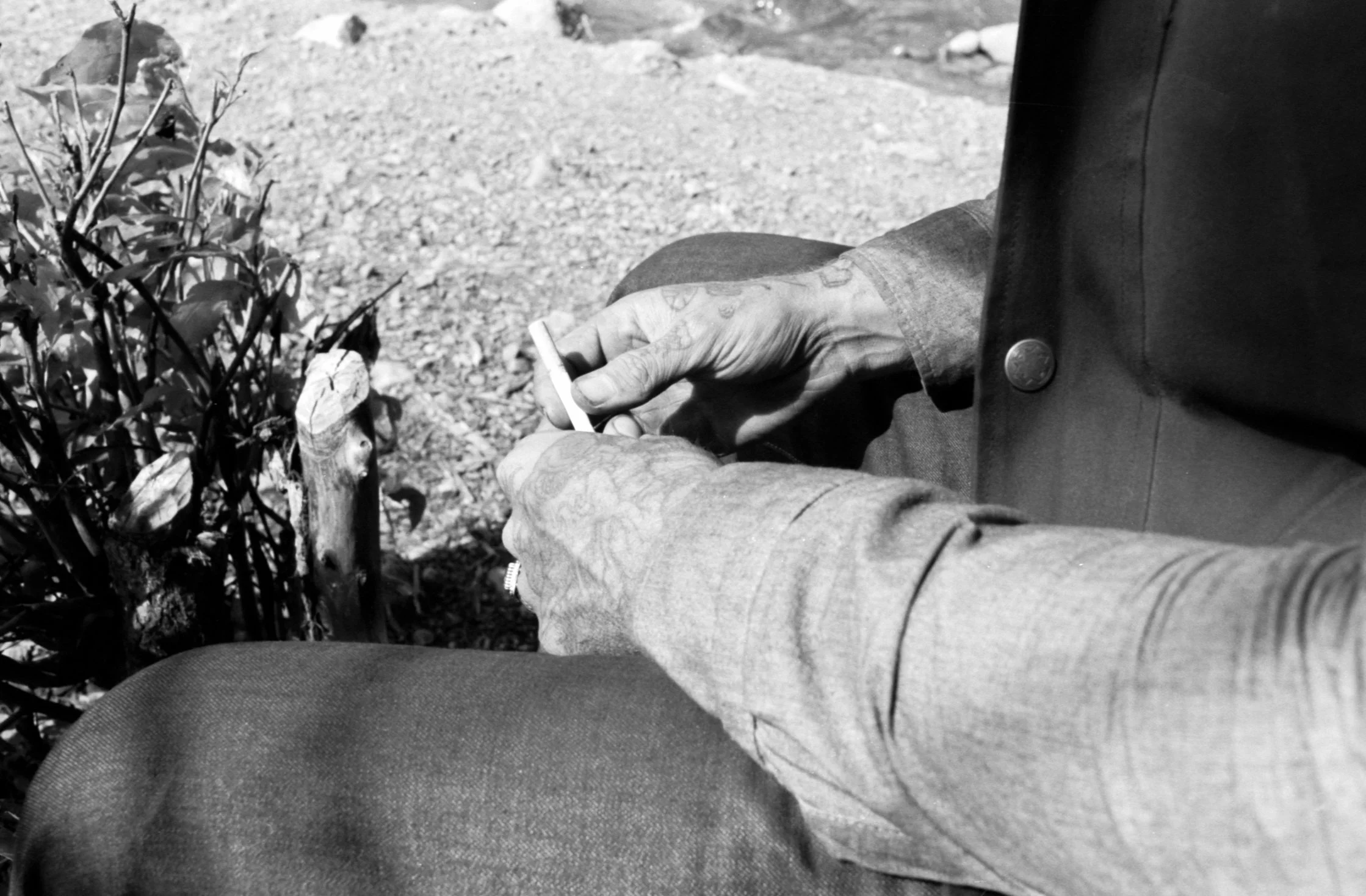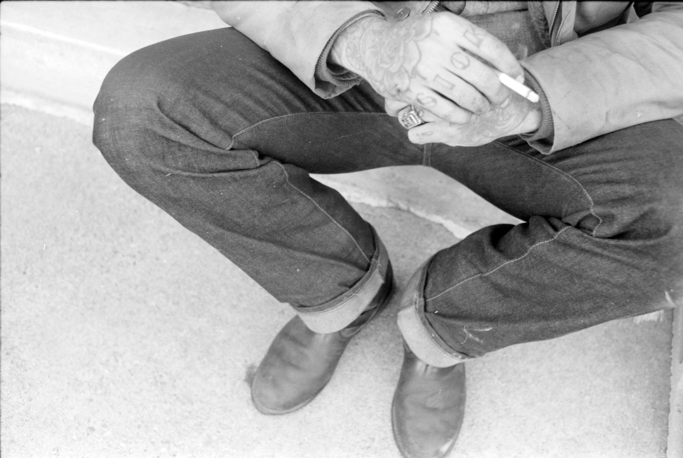 I had zero time to think about anything other than riding my motorcycle. I forgot we were even on this trip as it took everything in me to fully concentrate on not crashing, pure and utter chaos of the mind. We actually looked forward to not riding a motorcycle and greeted coastal camping as if it were being home in our own bed. At one site a little north of San Francisco, we met a guy named Spence who lived out of his early 80s sedan and had an abundant supply of Miller High Life’s. He hauled timber for a living and would sleep in his car on the coast when he wasn’t working. Just countless stories and a guy you wouldn’t want to be on the wrong side of a conversation with. In between beers and him showing off his razor sharp 12” Bowie knife I was able to get a photograph of his one and only tattoo. It was the last photograph I took on the trip. Seemed fitting, fuck you, goodnight.